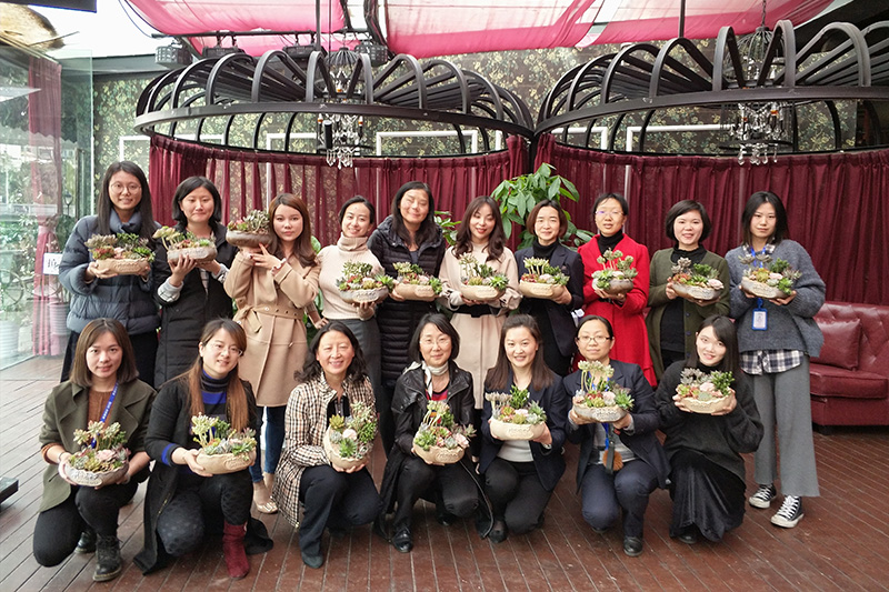 随后,,,,,园艺先生向各人先容了多肉植物的种别品种、形态特征、莳植要领以及微景观的艺术设计与赏鉴。。。。在体验环节,,,,,面临一棵棵萌态可掬的“小鲜肉”,栩栩如生的小摆饰,,,,,细腻新奇的花盆,,,,,各人兴奋不已,,,,,跃跃欲试。。。。事情中老练的女男子酿成了心灵手巧的园艺师,,,,,她们战战兢兢地将娇柔的植物安入花内,,,,,铺上彩色石子,,,,,放上小饰品,,,,,每小我私家都施展着富厚的想象和新颖的创意,,,,,一座座“迷你小花园”各具特色,,,,,极富设计感。。。。各人纷纷拿脱手机拍下作品,,,,,纪录下运动的优美瞬间。。。。喜欢养花的姐妹们还向先生讨教花卉莳植和养护知识,,,,,每小我私家的脸上都洋溢着轻松和愉悦。。。。