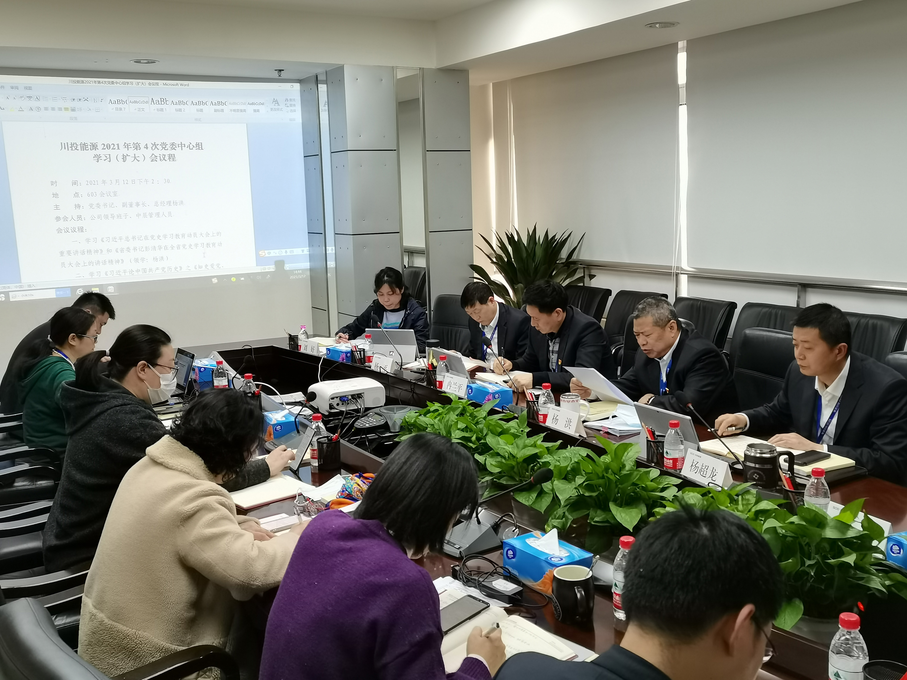 3月12日,,,,,bm11222宝马娱乐网站能源召开党委理论学习中心组学习(扩大)聚会,,,,,转达习近平总书记在党史学习教育发动大会上的主要讲话精神和省委书记彭清华在全省党史学习教育发动大会上的讲话精神,,,,,并集中学习《习近平论中国共产党历史》之《知史爱党、知史爱国》篇章。。。。。公司党委书记、副董事长、总司理杨洪主持聚会并带动领学。。。。。公司向导班子成员、各部分认真人加入学习。。。。。