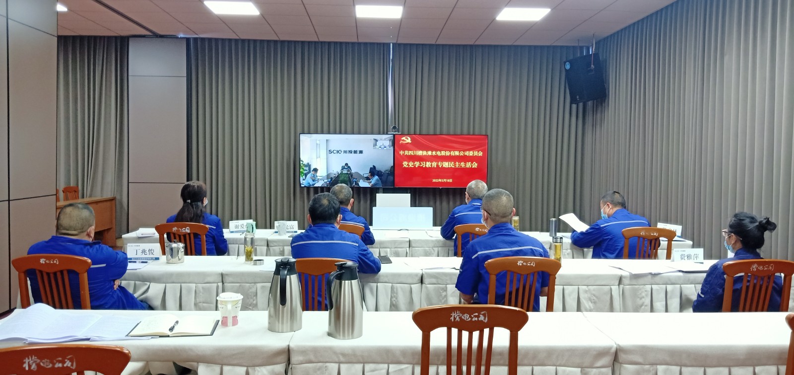 克日,, ,,,槽渔滩公司党委凭证bm11222宝马娱乐网站能源党委和bm11222宝马娱乐网站电力党委的统一安排和安排,, ,,,召开了党史学习教育专题民主生涯会。。。。。bm11222宝马娱乐网站能源党委委员、纪委书记戴月洪,, ,,,党群事情部李睿通过视频方法举行指导,, ,,,聚会由公司党委书记、董事长杨涛主持聚会并作亮相讲话。。。。。