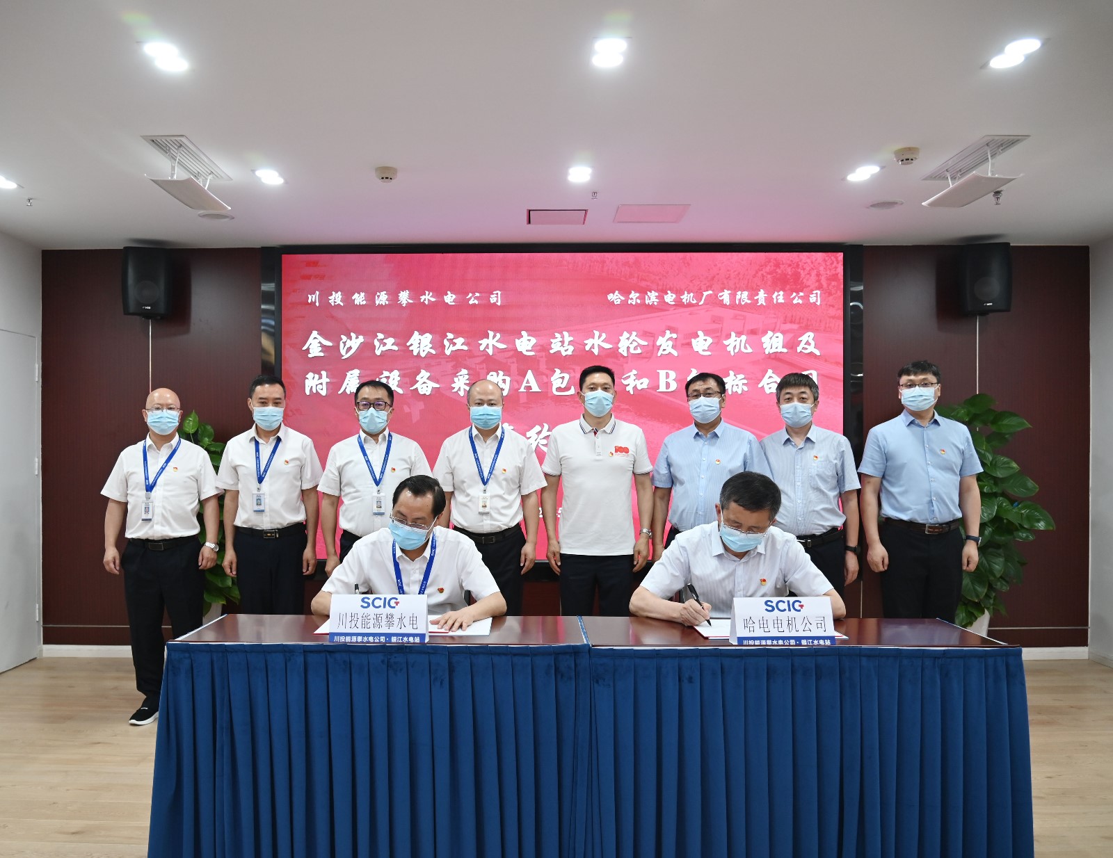 5月13日上午,,,攀水电公司在公司2620聚会室举行了金沙江银江水电站水轮发电机组及隶属装备采购A包标和B包标条约签约仪式。。。。。bm11222宝马娱乐网站能源党委副书记、工会主席冉兰平出席仪式并见证签约,,,bm11222宝马娱乐网站能源副总司理、攀水电公司党总支书记、董事长、攀新能源公司董事长徐孝刚与哈尔滨电气股份有限公司副总裁、哈尔滨电机厂有限责任公司董事长、党委书记王贵代表双方签约,,,仪式由攀水电公司党总支委员、总司理吴巍屿主持,,,哈尔滨电机厂有限责任公司相关部分职员、攀水电公司与攀新能源公司向导及相关职员共23人出席仪式。。。。。