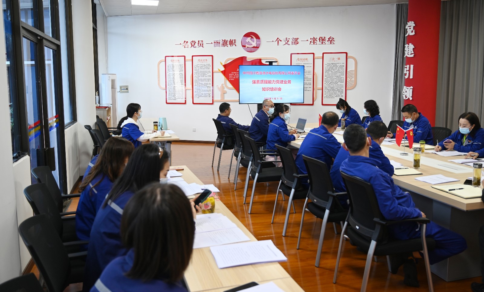 5月17日,,,,,bm11222宝马娱乐网站电力槽渔滩公司党委开展了“强素质、提能力”党建营业知识培训。。培训会由公司党委副书记张启林主持。。