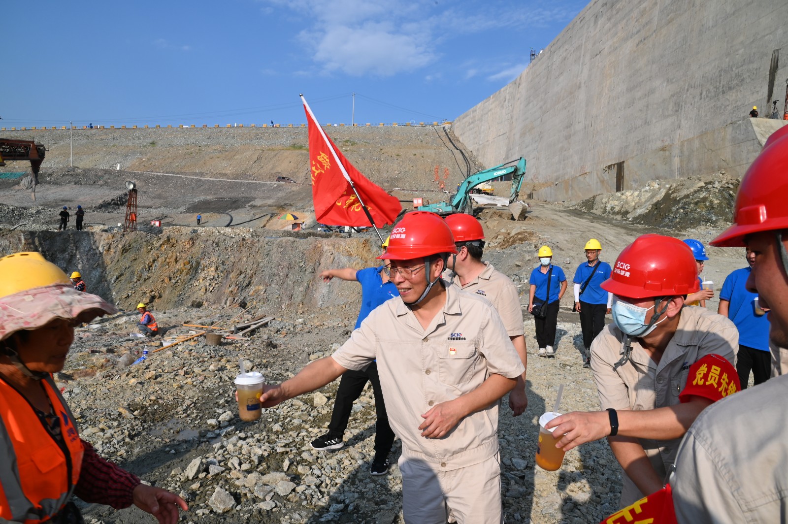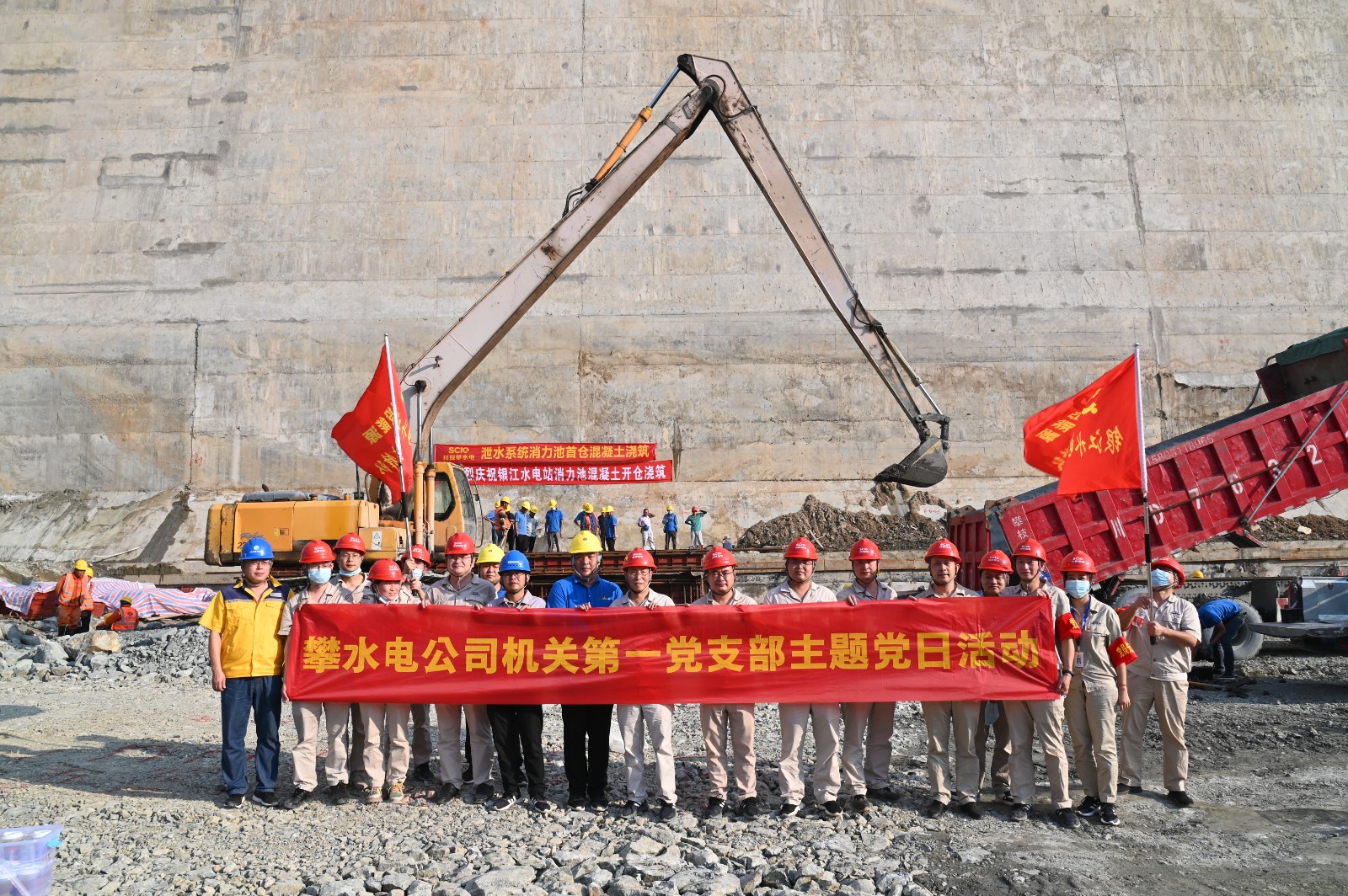凭证银江水电站“决战四序度、大干一百天”运动安排,,,,,妄想于9月29日下昼最先主体工程泄水系统消力池首仓混凝土浇筑。。为效劳该项主要节点目的的顺遂实现,,,,,9月29日,,,,,由机关第一党支部牵头,,,,,约请联建支部部分党员,,,,,到银江水电站施工现场,,,,,开展了主题为“效劳消力池首仓混凝土浇筑,,,,,在决战100天运动中孝顺支部实力,,,,,以现实验动喜迎二十大”的主题党日运动。。