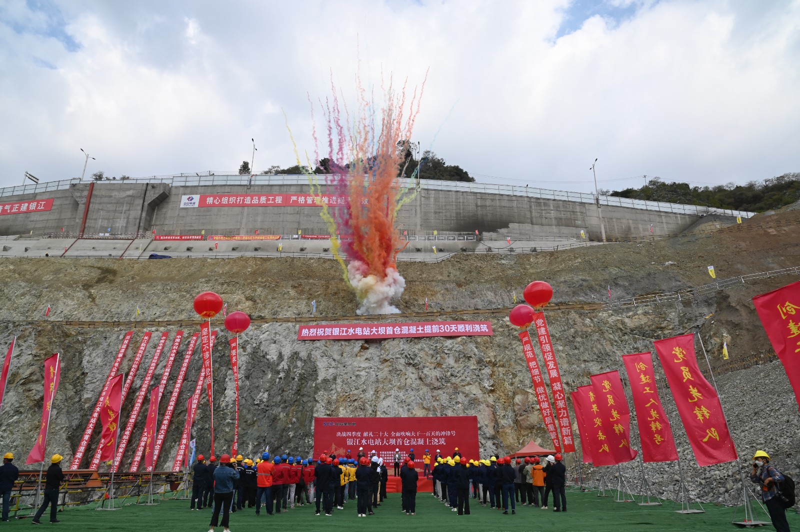 自党的二十大胜利召开以来,,,,攀水电公司深入学习党的二十大精神,,,,切实做勤学习消化、明确深化、运用转化“三篇文章”,,,,以迎难而上的韧劲、攻坚克难的拼劲、只争朝夕的劲头,,,,全力推进省委省政府和bm11222宝马娱乐网站集团、bm11222宝马娱乐网站能源关于“决战四序度、大干一百天”的主要决议安排,,,,全力冲刺整年各项目的使命,,,,于11月5日提前30天最先银江水电站大坝首仓混凝土浇筑。。。。。