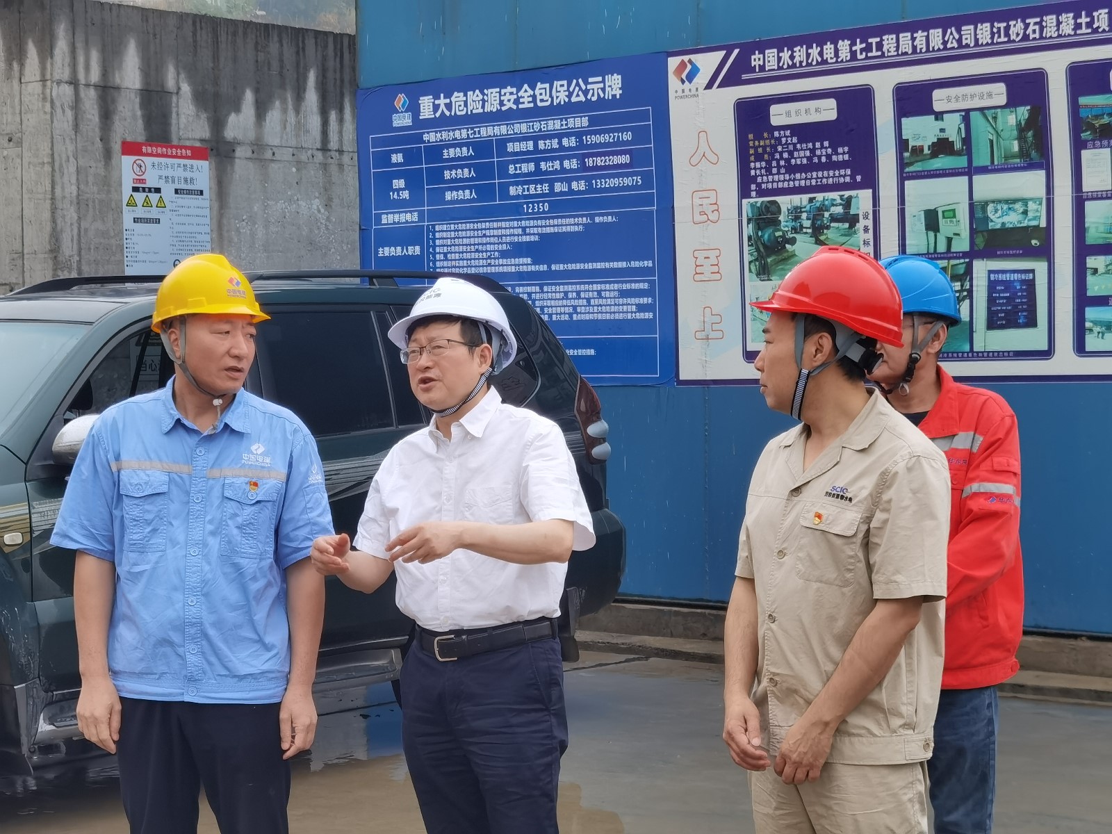 杨平一行深入银江水电站施工现场 ,,,审查清静危害管控情形 ,,,相识工程建设及清静生产情形 ,,,连系清静生产强化年、重大事故隐患专项排查整治、防汛减灾等事情 ,,,对现场液氨制冷系统等重点部位、重点装备、施事情业面的清静步伐落真相形开展督导检查 。。。