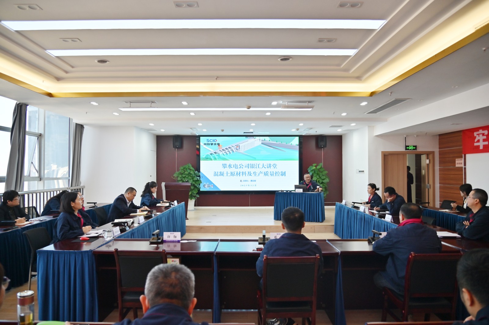 为进一步提高公司员工的职业素质,,增强内部相同协作,,提高事情效率,,12月20日,,攀水电公司举行 2023 年第十期“银江大课堂”,,公司党总支副书记、董事会秘书、工会主席邓勇等向导、员工及参建单位代表30余人加入。。