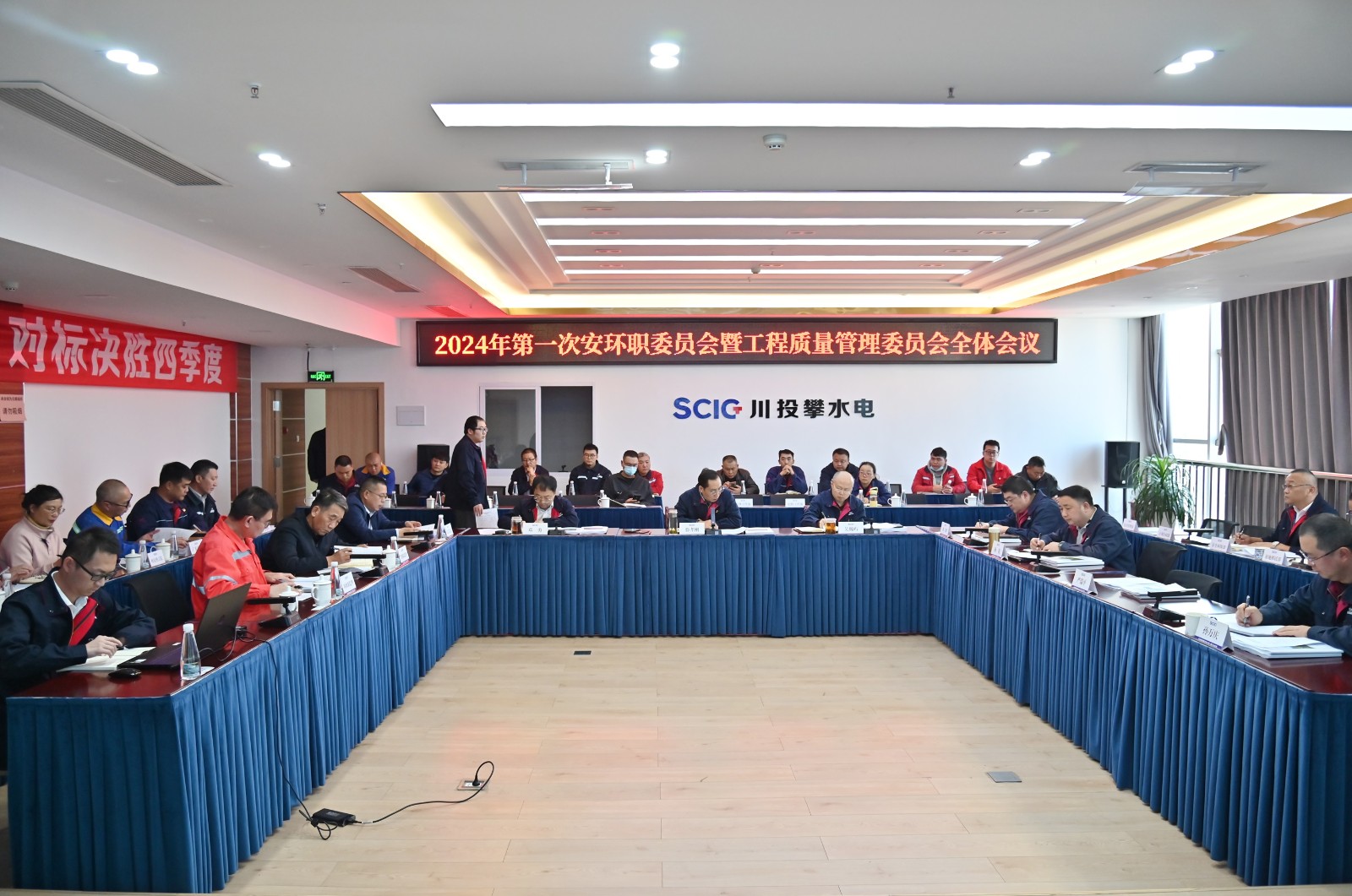 1月15日下昼,,,在新春佳节即将到来之际,,,公司在2620聚会室召开了2024年一季度工程质量治理委员会全体聚会,,,聚会由bm11222宝马娱乐网站能源副总司理、公司党总支书记、董事长、质委会主任徐孝刚主持,,,公司党总支副书记、总司理、质委会主任吴巍屿及公司在攀向导出席聚会,,,公司工程治理部、清静环保部、妄想条约部、党群事情部,,,长江设计代表处、各监理部、第三方质量检测单位、各施工单位项目部向导及主管质量认真人共计40余人加入聚会。。。