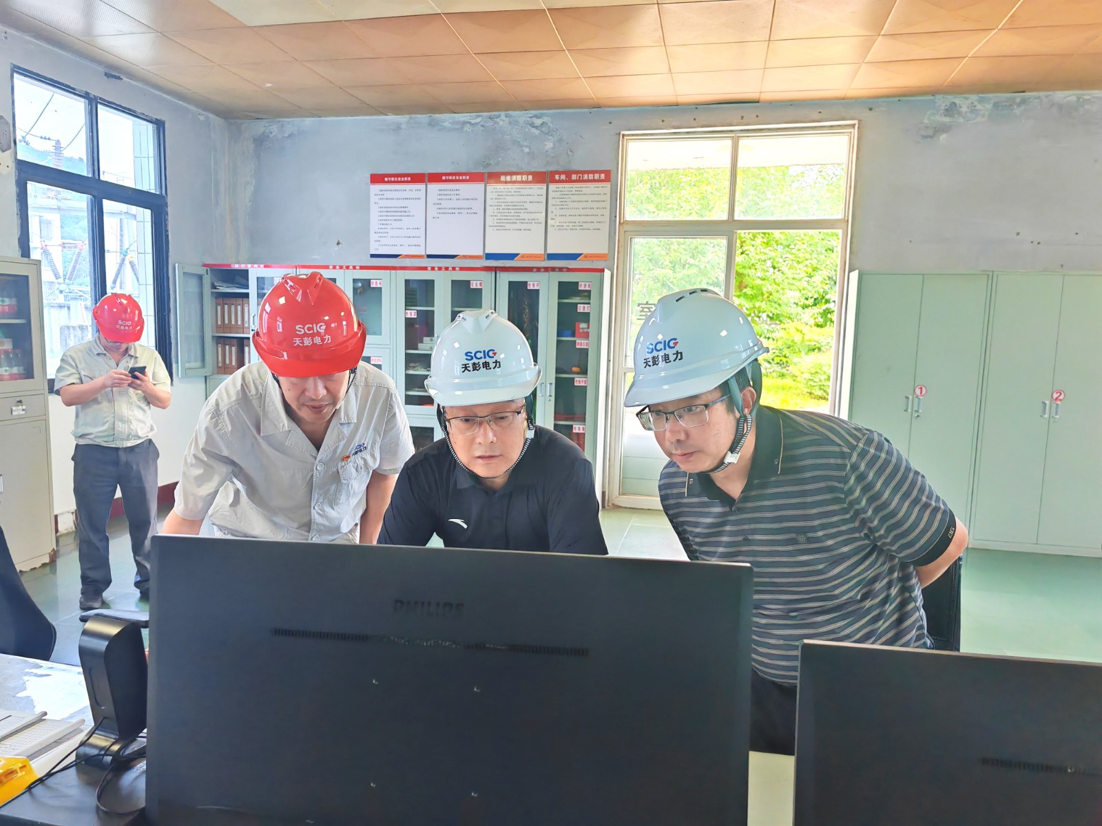 检查组一行首先来到公司沙金车间回龙沟底格栏栅坝,,,,审查河流水情和引水枢纽运行工况,,,,相识上游水、雨情监测及防汛防地灾应急响应执行情形;;;;;在凤鸣湖水库大坝,,,,检查组审查了运行值班、预警应急响应、研判及避险步伐,,,,并提出刷新意见。。。随后前往公司凤鸣桥站和官田坝站,,,,着重审查了生产现场清静治理、机组装备、水淹厂房报警装置运行等情形,,,,相识隐患排查整治和危害管控事情落真相形。。。