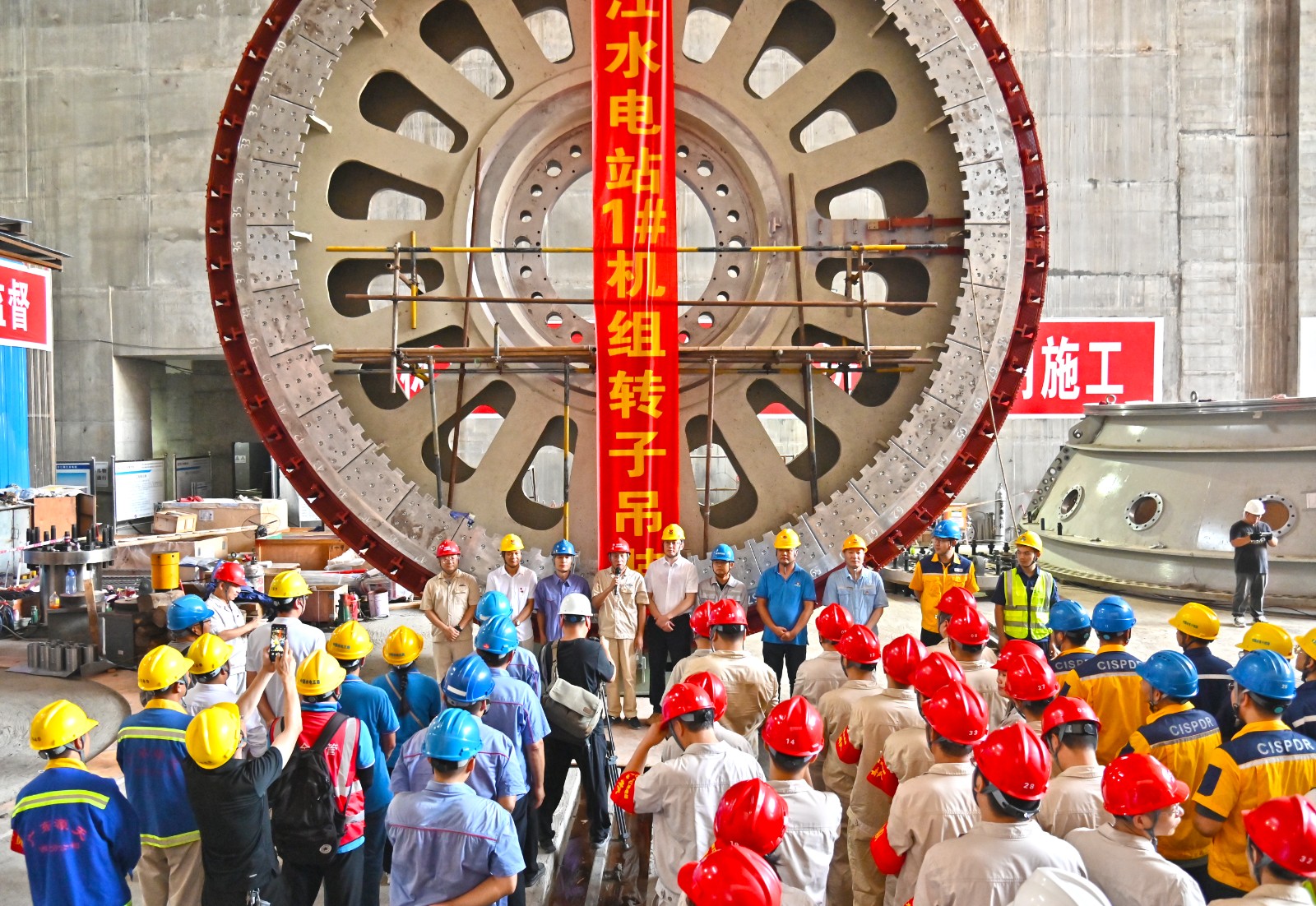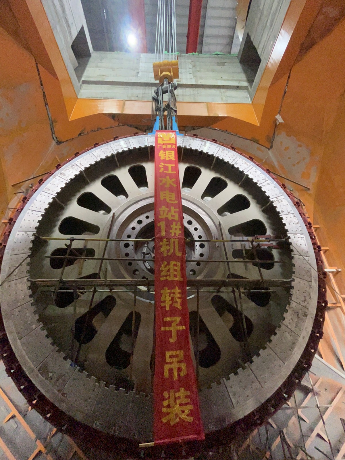 【攀水电公司】银江水电站首台机组转子顺遂吊装