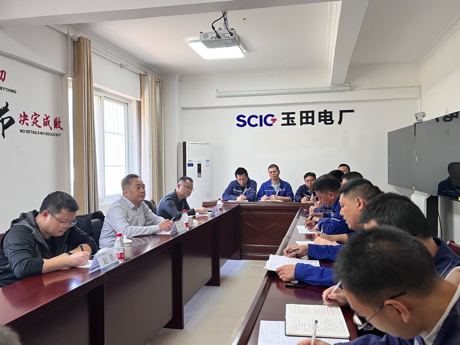 杨涛一行在玉田电厂党支部书记、厂长叶劲驰陪同下,,,,,对电厂水工修建、机电装备、中控室、主副厂房、升压站等区域举行周全检查。。随后召开座谈会,,,,,听取玉田电厂各部分认真人关于装备磨练维护消缺情形、清静生产治理、运营生长、党建事情等方面的事情汇报。。