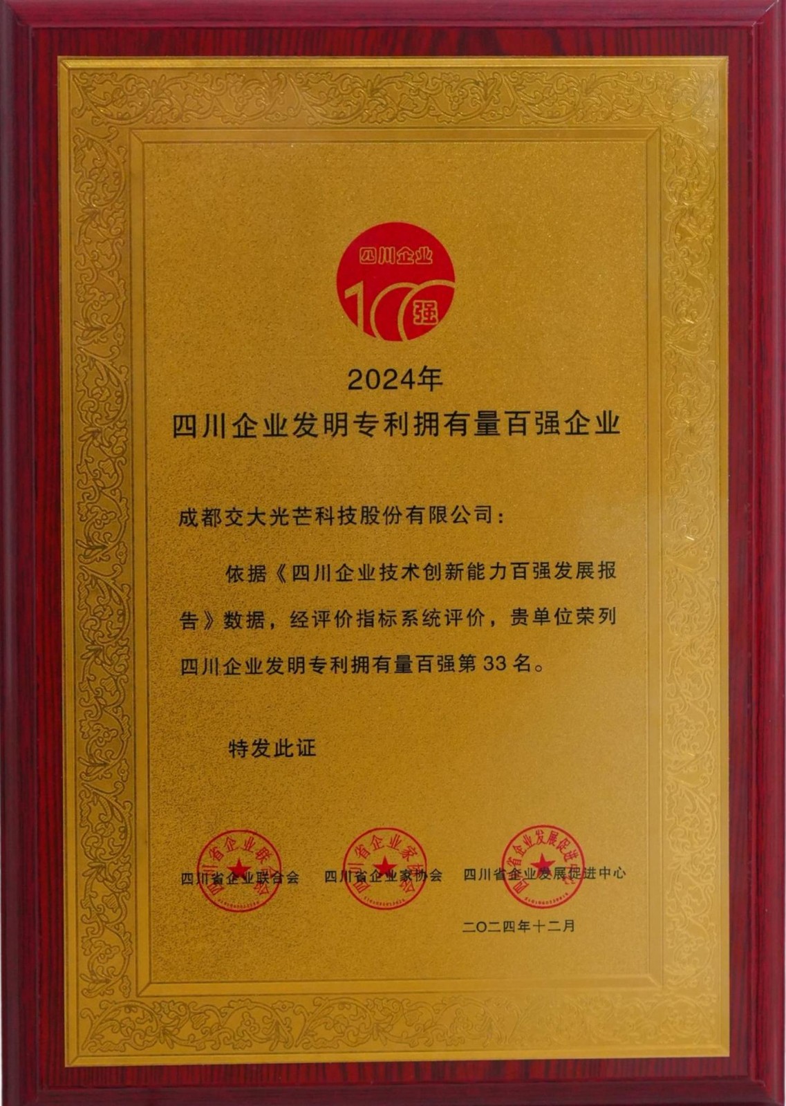 克日,,以“手艺立异荣耀四川”为主题的2024年四川企业手艺立异生长大会在成都召开,,大会宣布《2024四川企业手艺立异生长能力百强生长报告》,,bm11222宝马娱乐网站能源所属交大光线荣获四川企业手艺立异能力百强企业(第42位)和四川企业发明专利拥有量百强企业(第33位),,这是交大光线一连三年获评“双百强”企业认定。。大会还宣布了49名企业手艺立异突出孝顺人物,,交大光线首席专家、副总司理陈奇志荣获“2024年四川企业手艺立异突出孝顺人物”称呼。。