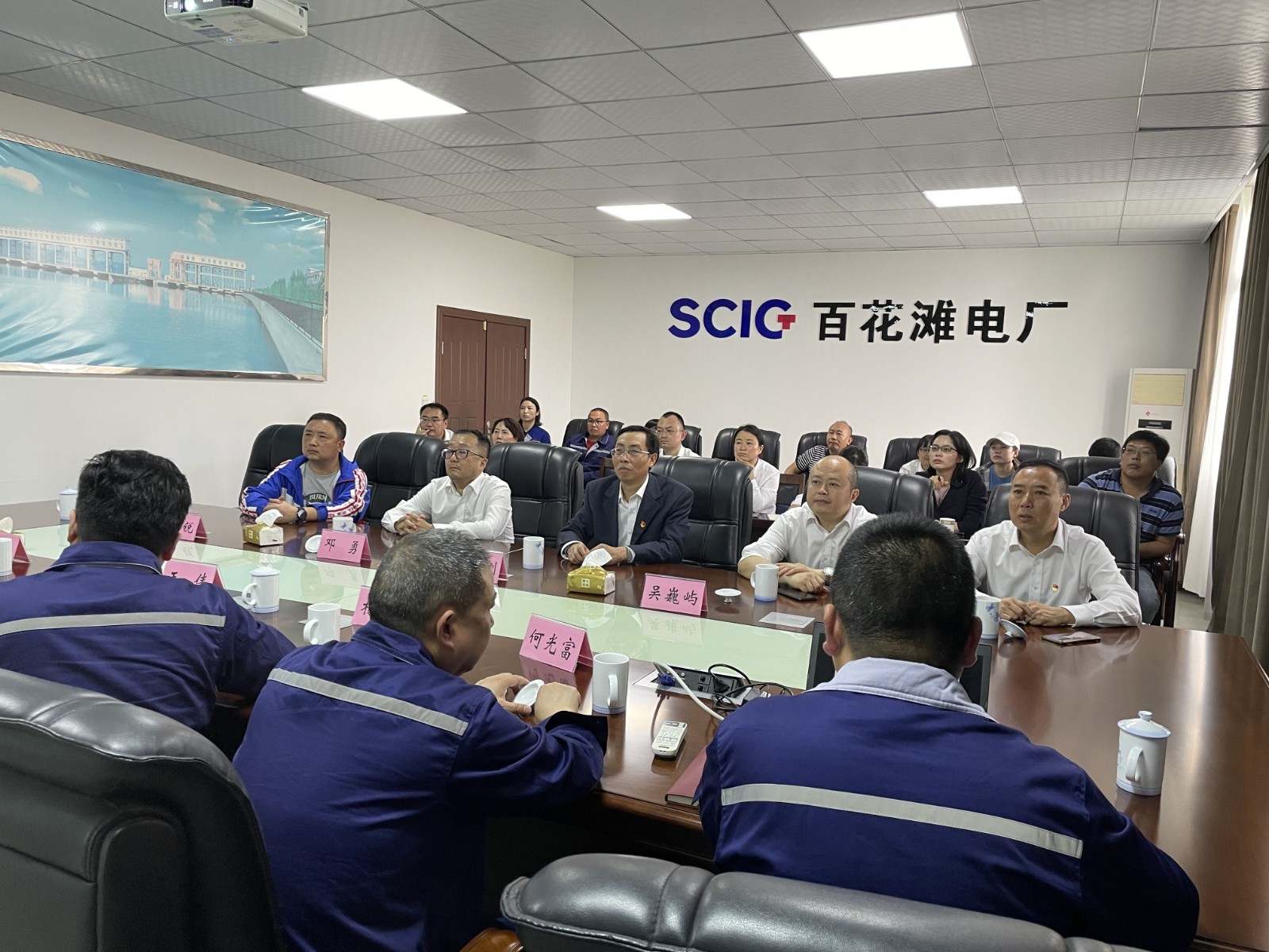 检查组现场审查了大坝水工修建物运行情形,,机组磨练事情开展及磨练现场清静管控情形,,详细相识了电站运行倒班、防洪预案培训及应急值守情形,,并听取了中控室值长对库容、机组运行以及发电量等方面的汇报。。。。徐孝刚对百花滩电站精简有用的应急值守模式及现场清静治理事情体现一定,,并希望百花滩电站在现有基础上,,起劲地走出去,,自动交流学习,,借鉴他人先进的科学履历,,向一流标杆电站看齐。。。。