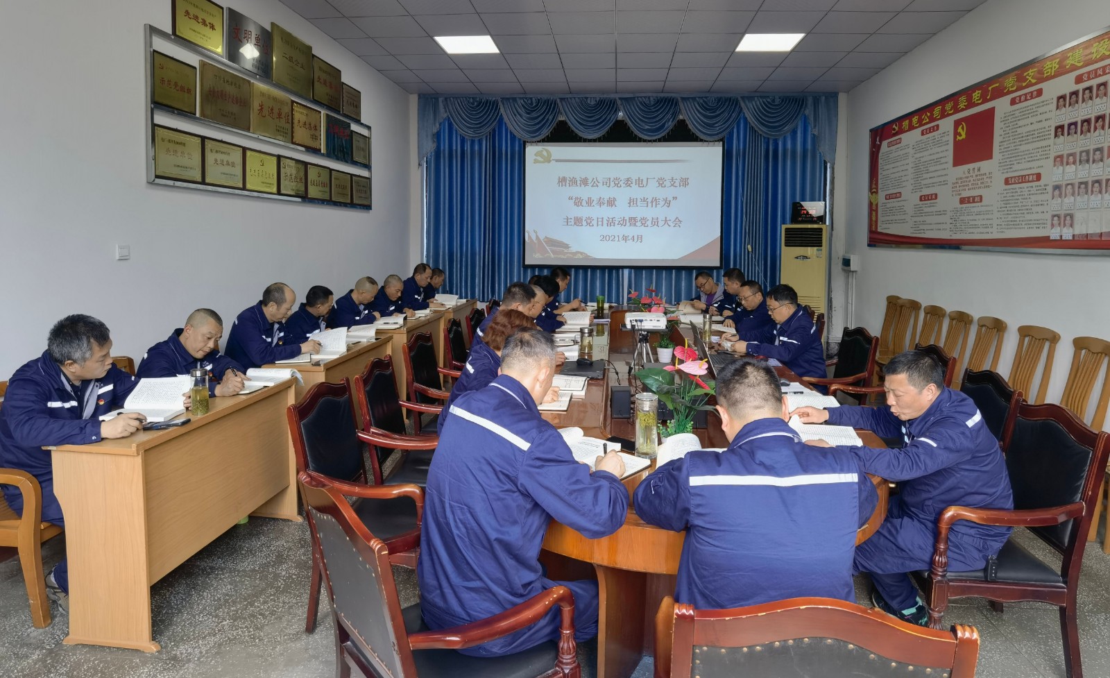 凭证公司党委“关于开展党史学习教育实验计划”要求,,4月25日,,bm11222宝马娱乐网站能源槽渔滩公司电厂党支部组织全体党员在电厂党建运动室开展4月份主题党日运动暨党员大会。。。。。