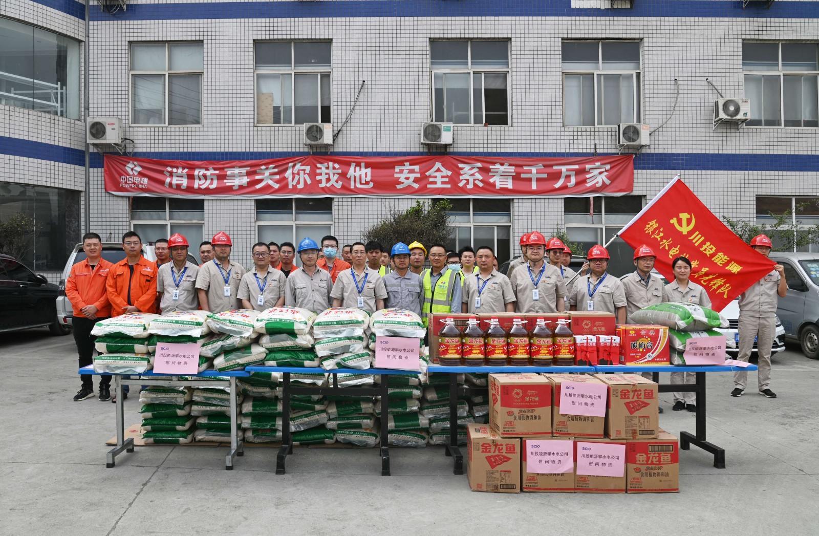 慰问组一行在施工变电站给奋战在银江水电站项目施工一线的各参建单位职工送去大米、食用油、绿豆等物品,,并为联建支部水电十局、水电七局党建运动室送上《把一切献给党》等党史学习书籍,,为开展党史学习教育提供精神食粮。。。。。