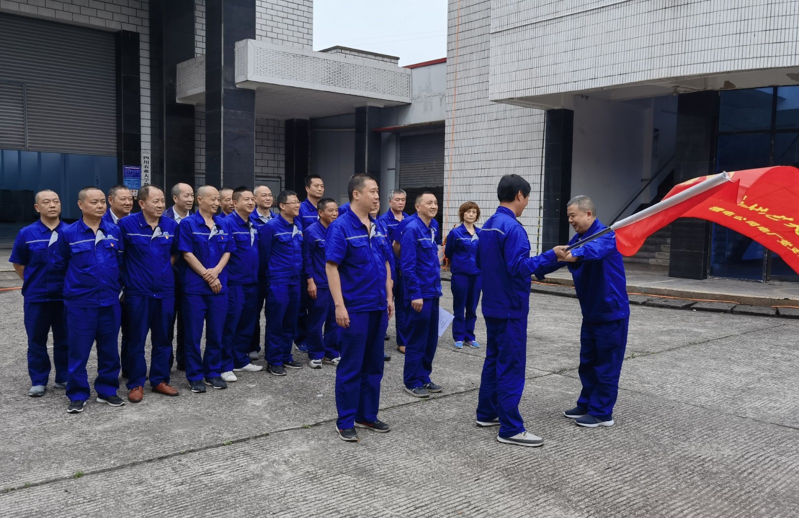 5月25日 ,,为进一步提升党建事情的内在动力和活力 ,,充分验展党员干部的先锋模范带举措用 ,,充分验展支部委员会的战斗堡垒作用 ,,槽渔滩电厂党员先锋模范突击队正式建设。。公司党委委员、常务副总司理何光富向突击队授队旗。。
