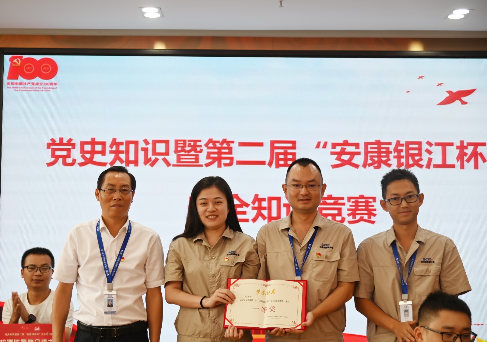 主持人由水电十局陆大鹏和公司党群部衡浩钰担当,,,竞赛分为两个阶段,,,第一阶段为党史知识竞赛,,,包括党史、四史知识等内容;;;第二阶段为清静知识竞赛,,,问题涵盖清静生产、职业病提防、环保水保、禁毒等相关知识。。。。题型分为必答题、抢答题、危害题,,,现场气氛热烈、答题踊跃,,,8个支部代表队各个都是有备而来,,,志在第一。。。。赛场上各代表队你追我赶,,,分数从一最先的不分上下到徐徐拉开差别。。。。经由强烈的角逐,,,机关第二党支部代表队以娴熟的抢答技巧和扎实的理论功底勇夺桂冠;;;机关第一党支部代表队夺得第二名;;;设计监理联合党支部代表队获得第三名;;;水电十局银江项目部党支部代表队获得优异奖。。。。经由评委们的认真评议,,,对水电七局银江项目部党支部代表队全心组织、并挑战高分值危害题的勇气给予一定,,,获得优异组织奖。。。。