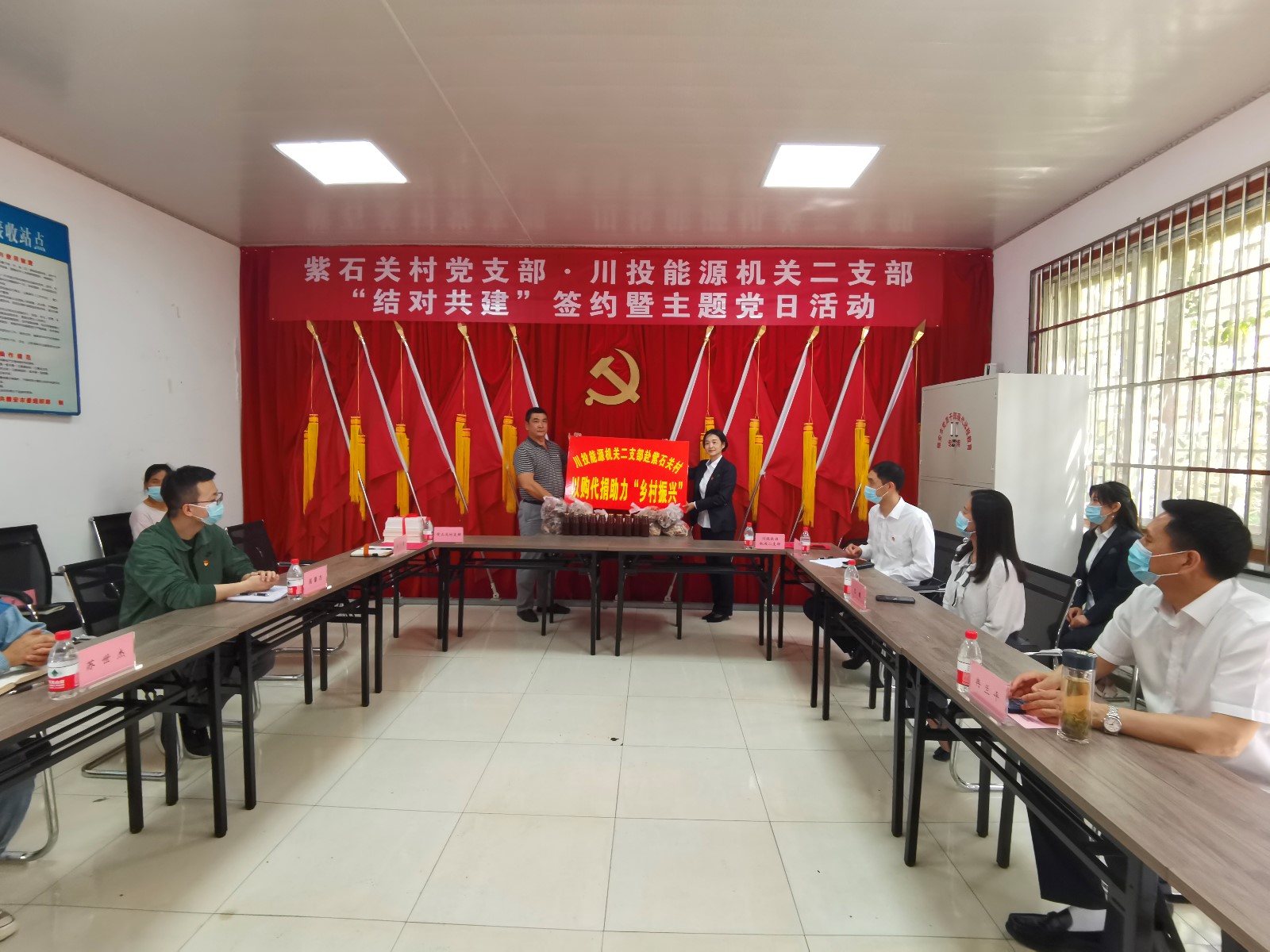 日前,,bm11222宝马娱乐网站能源机关二支部赴紫石关村开展“结对共建”签约暨主题党日运动,,现场签署《企地党支部结对共建协议书》,,向紫石关村党支部赠予全心挑选的党建类书籍,,聆听红色“微党课”,,重温入党誓词,,并开展“以购代捐”助力墟落振兴帮扶运动。。。。。公司党委副书记、工会主席冉兰平,,喇叭河镇党委副书记苏世杰全程加入。。。。。企地双方支部党员共计22人加入运动。。。。。