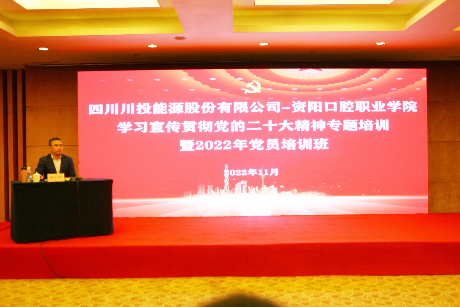 为深入学习宣传贯彻党的二十大精神,,,牢靠拓展党史学习教育效果,,,一直夯实全体党员忠诚拥护“两个确立”、坚决做到“两个维护”的政治自觉、头脑自觉、行动自觉,,,11月21日-22日,,,bm11222宝马娱乐网站能源党委与资阳口腔职业学院党委配合举行学习宣传贯彻党的二十大精神专题培训暨2022年党员培训班。。。。bm11222宝马娱乐网站能源党委书记、副董事长、总司理杨洪出席并授课,,,资阳口腔职业学院党委书记、理事长张中伟出席并作开班讲话,,,bm11222宝马娱乐网站能源党委副书记、工会主席冉兰平主持开班仪式。。。。